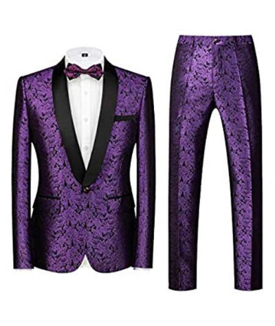 View full detailsOne Button Single Breasted Shawl Lapel Flat Front Style Pants Casual Style Skinny Fit Type One Chest Pocket Two Flap Front Pockets Color: Purple an...