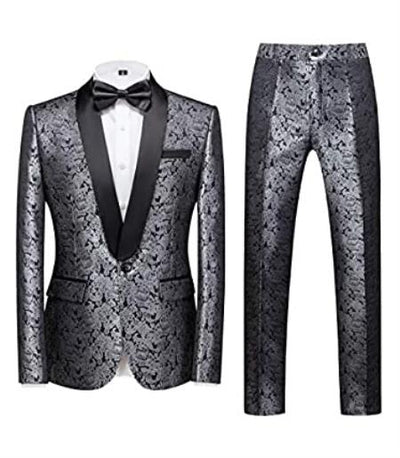 View full detailsOne Button Single Breasted Shawl Lapel Flat Front Style Pants Casual Style Skinny Fit Type One Chest Pocket Two Flap Front Pockets Color: Silver an...
