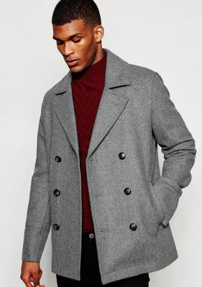 View full detailsSix Button Double Breasted Notch Lapel Front Slash Pockets Color: Light Grey Designer men's Wool Peacoat Sale SKU#JA2253