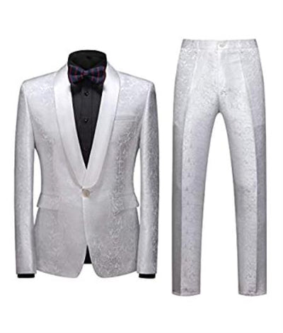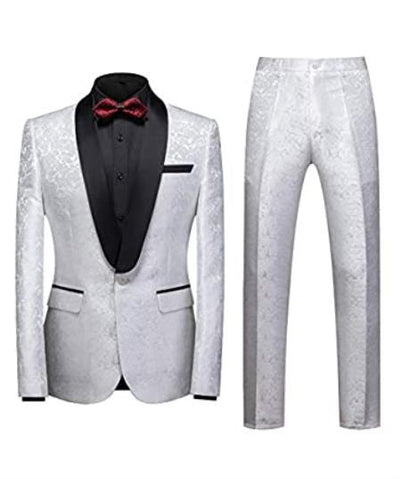 One Button Single Breasted Shawl Lapel Flat Front Style Pants Casual Style Skinny Fit Type One Chest Pocket Two Flap Front Pockets Color: White and...