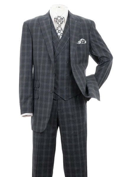 View full detailsModern classic style: This suit features a 2 button classic fit jacket with notch lapel and side vents, a matching double breasted vest, and matchi...