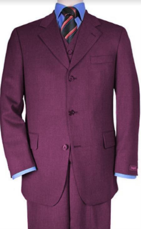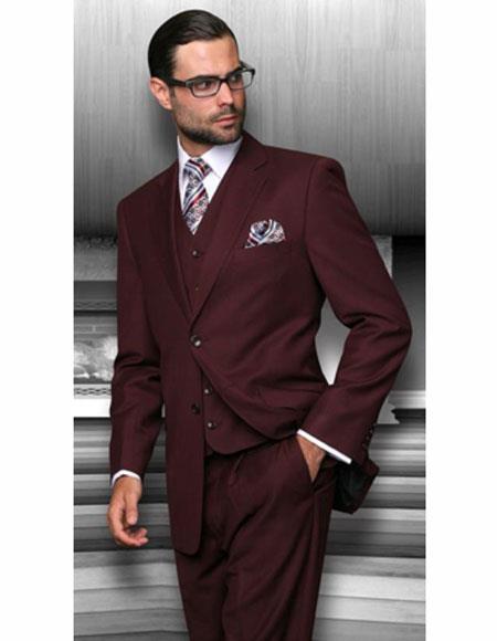 View full detailsModern Linen Style Weave Single pleated pants 2 Button Jacket Poly Blend superfine material 5 Button Vest Notch lapel Dry Clean Only Color: Burgundy