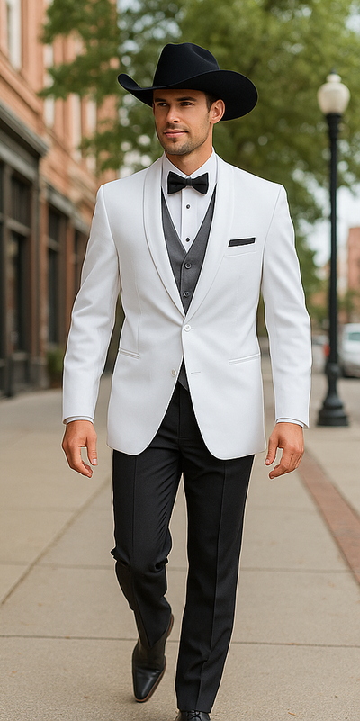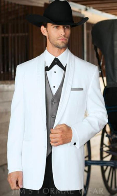 One Button Single Breasted Shawl Lapel One Chest Pocket Besom Pocket Matching Bowtie Color: White SKU#JA55892