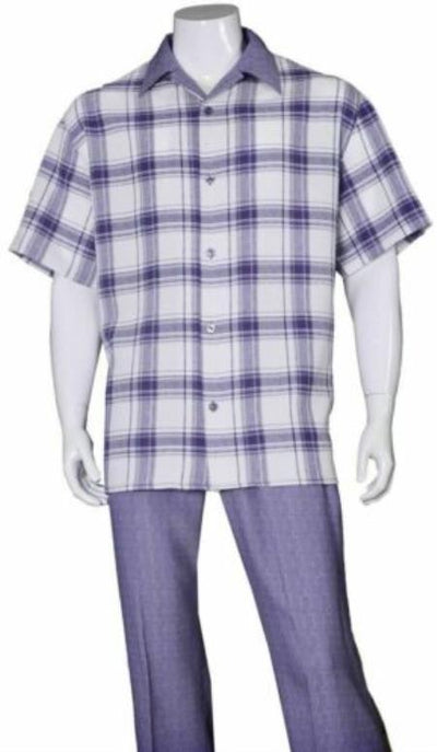 2pc Solid Pant And Patterned Shirt Button Fastening Single Left Side Pocket Point Collar Color: Purple