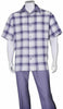 Button-Up Casual Button-Front Check Pattern Short Sleeve Length Polyester Color: Purple