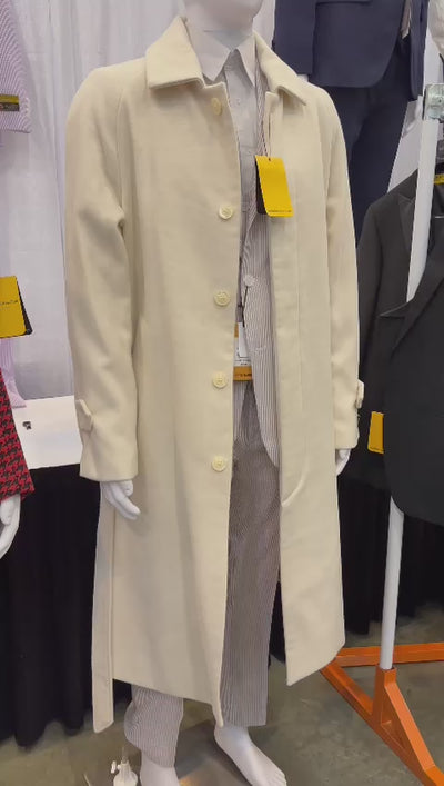 Five Button Collar Full Length Topcoat Belted Wool Coat Color: Ivory, White, Charcoal Almost Black, Navy and Camel