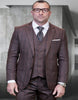 2 Button Notch Lapel Single Breasted 6 Button Double Breasted Vest Windowpane Pattern One Chest Pocket Two Flap Front Pockets Color: Bronze