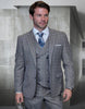 2 Button Notch Lapel Single Breasted 6 Button Double Breasted Vest Windowpane Pattern One Chest Pocket Two Flap Front Pockets Color: Gray