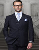 2 Button Notch Lapel Single Breasted Regular Fit One Chest Pocket Two Flap Front Pockets Color: Navy