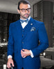 2 Button Notch Lapel Single Breasted Regular Fit One Chest Pocket Two Flap Front Pockets Color: Sapphire