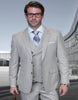 Pinstripe Design High Fashion Dress Suit (36" Length); 3 Button Single Breasted Jacket with Stitching Double Side Vents; With Collared Vest and Ple...