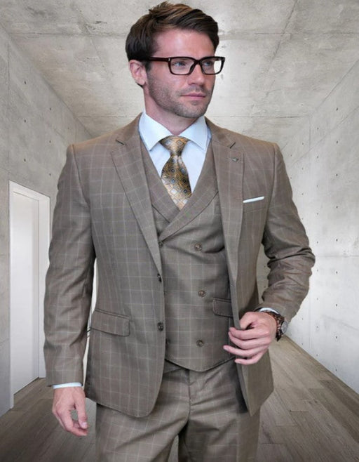 2 Button Notch Lapel Single Breasted 6 Button Double Breasted Vest Windowpane Pattern One Chest Pocket Two Flap Front Pockets Color: Bronze