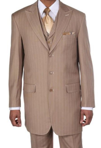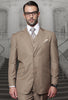 Three Button Single Breasted Peak Lapel One Chest Pocket Two Flap Front Pockets Ticket Pocket Color: Tan SKU#JA405