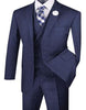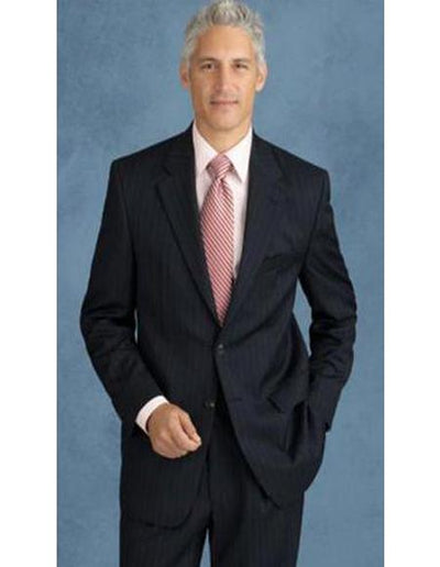 Two Button Single Breasted Notch Lapel One Chest Pocket Two Flap Front Pockets Pinstripe Pattern Color: Navy Blue SKU#JA3927