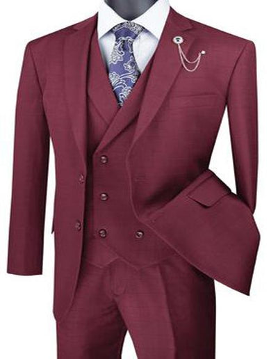 Two Button Single Breasted Notch Lapel One Chest Pocket Two Flap Front Pockets Plaid Pattern Color: Burgundy SKU#JA3915