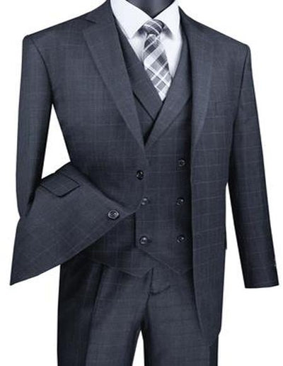 View full detailsTwo Button Single Breasted Notch Lapel One Chest Pocket Two Flap Front Pockets Plaid Pattern Color: Charcoal SKU#JA3916