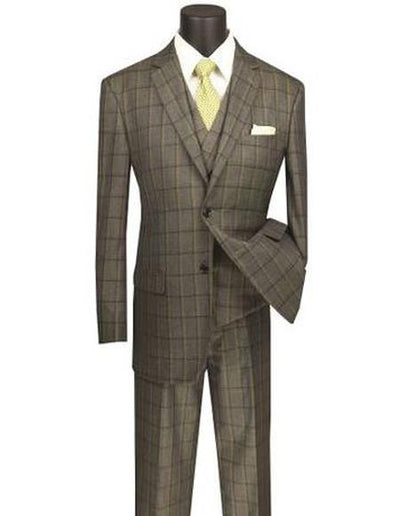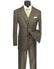 Two Button Single Breasted Notch Lapel One Chest Pocket Two Flap Front Pockets Windowpane Plaid Pattern Made of Poly/Rayon Super 150's Color: Olive...