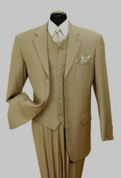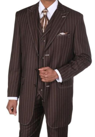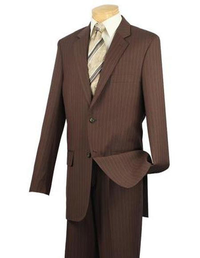 Two Button Single Breasted Notch Lapel One Chest Pocket Two Flap Front Pockets Pinstripe Pattern Color: Toffee Brown