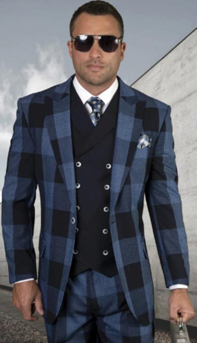 View full detailsRossiman Brand Navy Blue Suits - 1 Button Suit Peak Lapel Double Breasted Vest 1 Button Single Breasted Peak Lapel Double Breasted Vest Ticket Pock...
