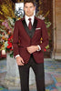 3 Piece Vested Suit Single Breasted 1 Button Tuxedo Modern Fit Suits One Chest Pocket Shawl Lapel Flat Front Pockets Color: Burgundy SKU#SM1144