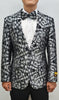 Two Button Single Breasted Peak Lapel Flap Two Front Pockets Paisley ~ Floral Pattern Color: Black and Silver SKU#JA57347