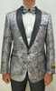 Two Button Single Breasted Peak Lapel Flap Two Front Pockets Paisley ~ Floral Pattern Color: Silver Gray and Black SKU#JA8092