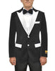 1 Button Single Breasted Shawl Lapel Fancy Pattern Side Vents Material: Rayon Viscose/Dacron Two Front Pocket One Chest Pocket Color: Black SKU#JA5...