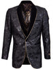 One Button Closure Single Breasted Shawl Lapel Two Besom Pockets One Chest Pocket Floral Pattern Color: Black & Silver