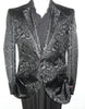 One Button Closure Single Breasted Shawl Lapel Two Besom Pockets One Chest Pocket Floral Pattern Color: Black & Silver