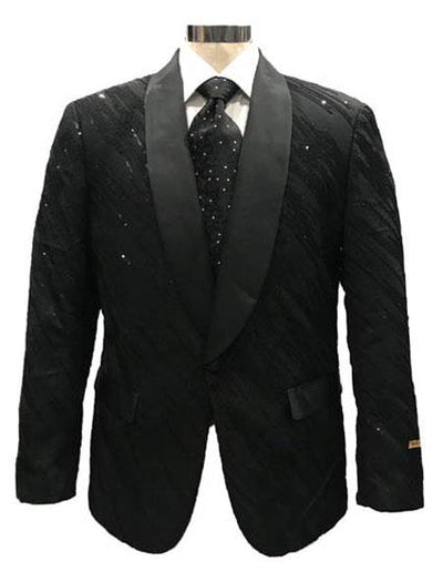 Cheap Priced Designer Fashion Dress Casual Blazer On Sale 1 Button Shawl Lapel One Chest Pocket Flap Front Pockets Paisley Pattern Color: Black SKU...