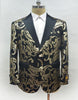 One Button Single Breasted Shawl Lapel One Chest Pocket Flap Two Pockets Floral Pattern Four Button Cuff Color: Black-Gold