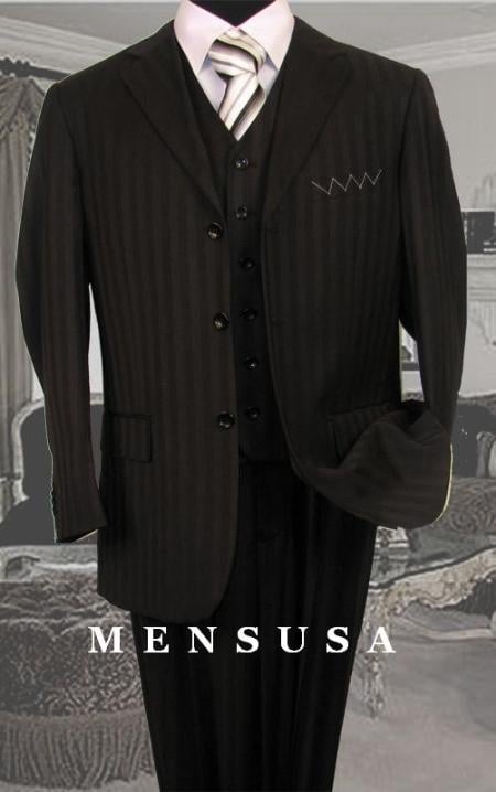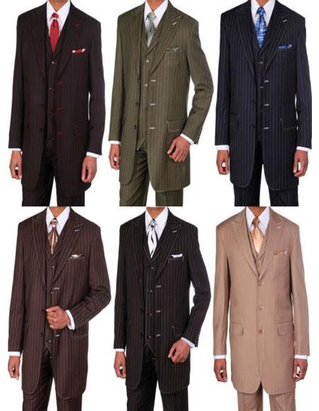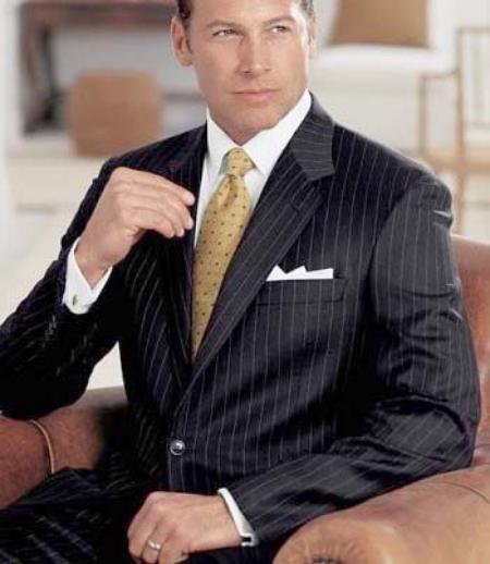 View full detailsClassic Pinstripe Suit Color: Black with white Style: pinstripe 3 button Poly rayon material all sizes available hand sewn