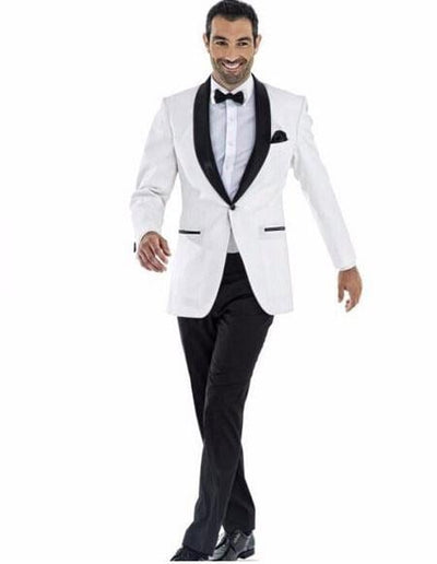View full detailsTuxedo with Black Peak Lapel Slim Fit Tuxedo Color: White,Black SKU#RA96