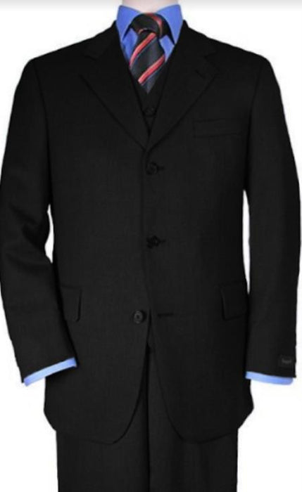 Classic Fit - Black Suit - Three Button Vested Suit - Athletic Fit