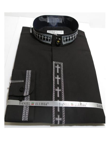 Banded Tall Collar Shirt Daniel Ellissa brand Mandarin Collarless Fashion French Cuff Material : Cotton/polyester blend Color : Black SKU#VTDS3002C