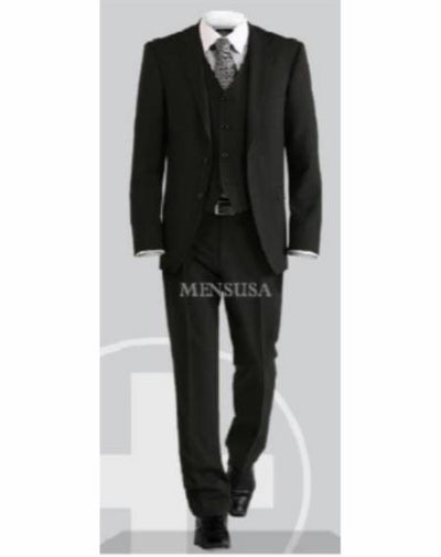 Demantie Men's Black Slim Fit Two Button Closure Suit