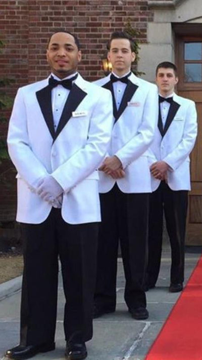 View full detailsTwo Button Single Breasted Notch Lapel One Chest Pocket Two Flap Front Pockets Color: White ~ Black SKU#JA1817