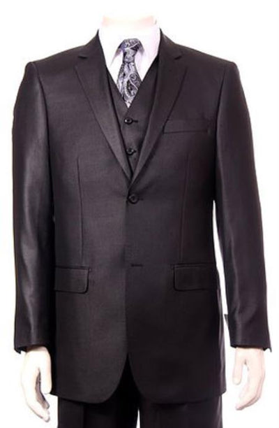 3 Piece Suit Two Button Closure Notch Lapel Single Breasted Flap Front Pockets One Chest Pocket Regular Fit Matching Vest Pleated Pant Side Vents M...