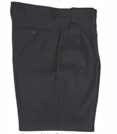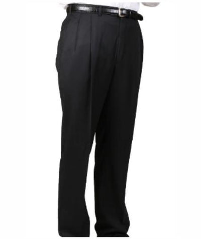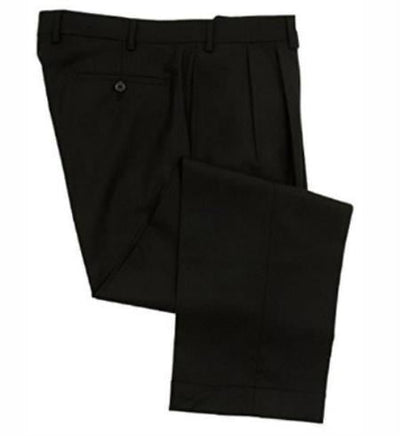Pleated front 55% Dacron Polyester 45% Worsted Pants are unhemmed to allow for custom fitting. Color: Black SKU#JA56928