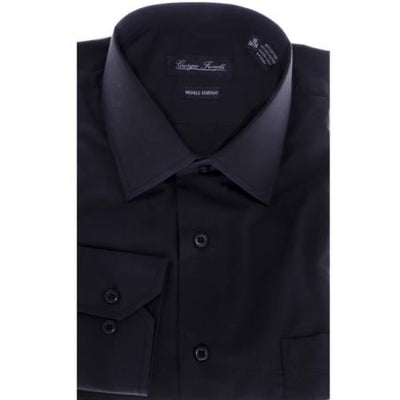 French Cuff Curved Pat Riley Collar Solid Pattern Material: 65% Cotton/35% Polyester Color: Black