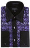 Collar: High Collar Material: Microfiber Polyester Pattern: Paisley Cuff Style: French Cuff Fit: Regular Color: Purple and Black SKU#RM1091