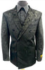 Two Button Single Breasted Peak Lapel One Chest Pocket Two Flap Front Pockets Color: Black Velvet With Gold Lapel SKU#JA3876