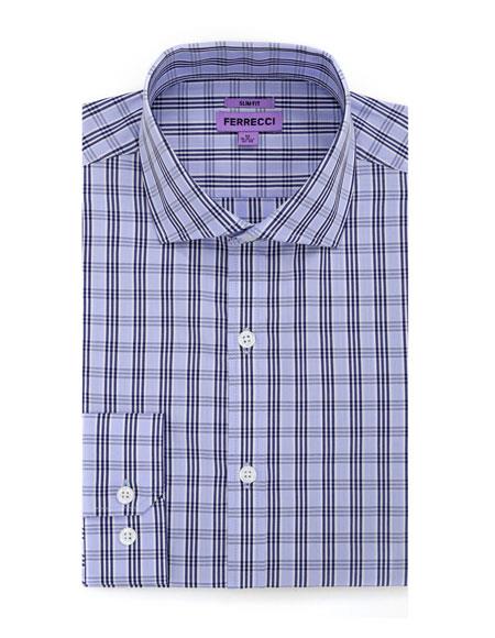 French Cuff Dress Shirt Solid Spread Collar matching French Cuff Gingham Plaid Pattern Cuff Links Color: Blue Gingham Plaid SKU#JA4137
