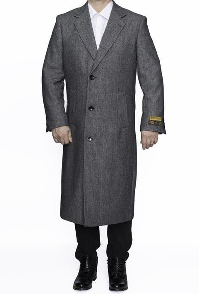 3 Button Closure Single Breasted Fur Collar Full Length Overcoat Color: Charcoal Grey SKU#SR305