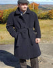 Four Button Closure Single Breasted Notch Lapel Adjustable Belt Coat Material: Wool Color: Navy Blue SKU#JA2261