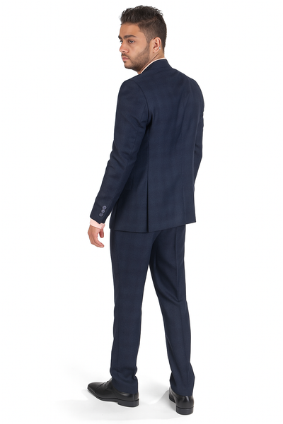 View full detailsMen's Designer Two Button Wool Suit in Navy Blue Plaid This Affordable Designer Italian Super 200's Wool Suit Comes in a Modern Fit Design, with F...