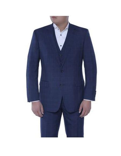 View full detailsMen's blue plaid modern fit three piece suit with peak lapel. High end suit by Stacy Adams. This suit is a hybrid fit, meaning, sizes up to 44 are ...