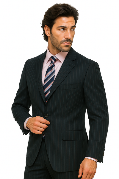 Make your statement with this navy pinstripe power suit. This stylish suit, great for the boardroom or special presentations, is perfect for the b...