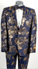 Single Breasted 2 Buttons Peak Lapel Modern Fit Side Vents Fancy Fabric Paisley Pattern One Chest Pocket Two Flap Front Pockets Color: Navy Blue an...