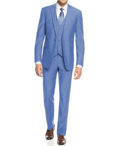 Mens Vested Smart Modern Fit Suit LT Blue